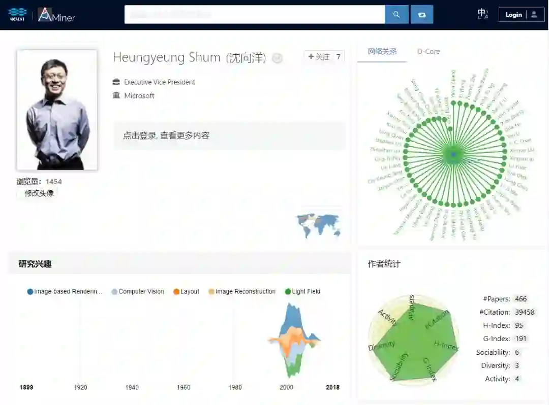 沈向洋学术大数据(来源:AMiner)