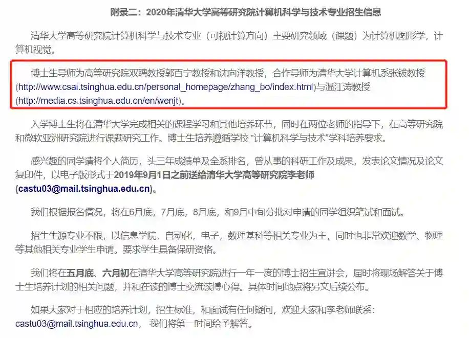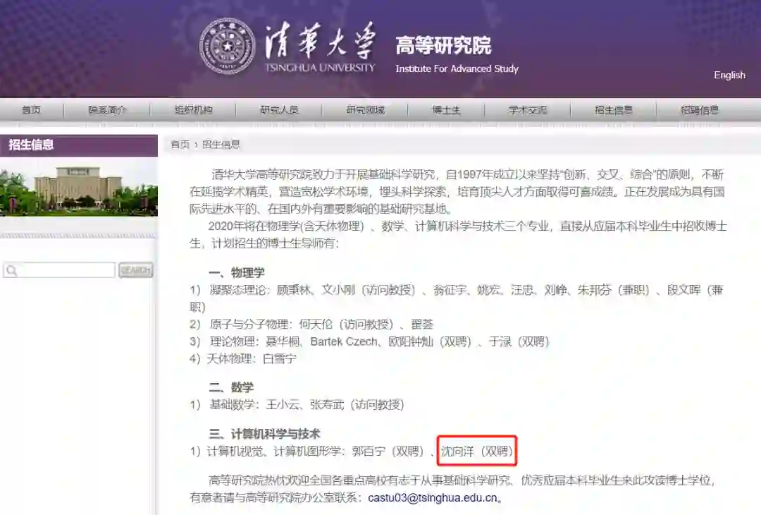 此外,学术君还在清华大学高等研究院官网上,看到有导师为沈向洋教授的博士生招生计划。