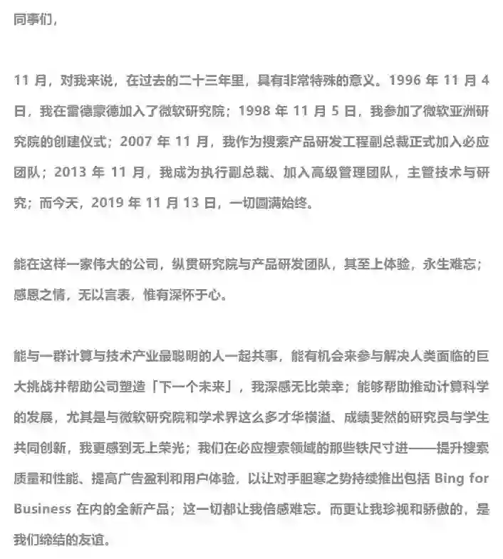最后,附上沈向洋离开微软时的公开告别信全文: