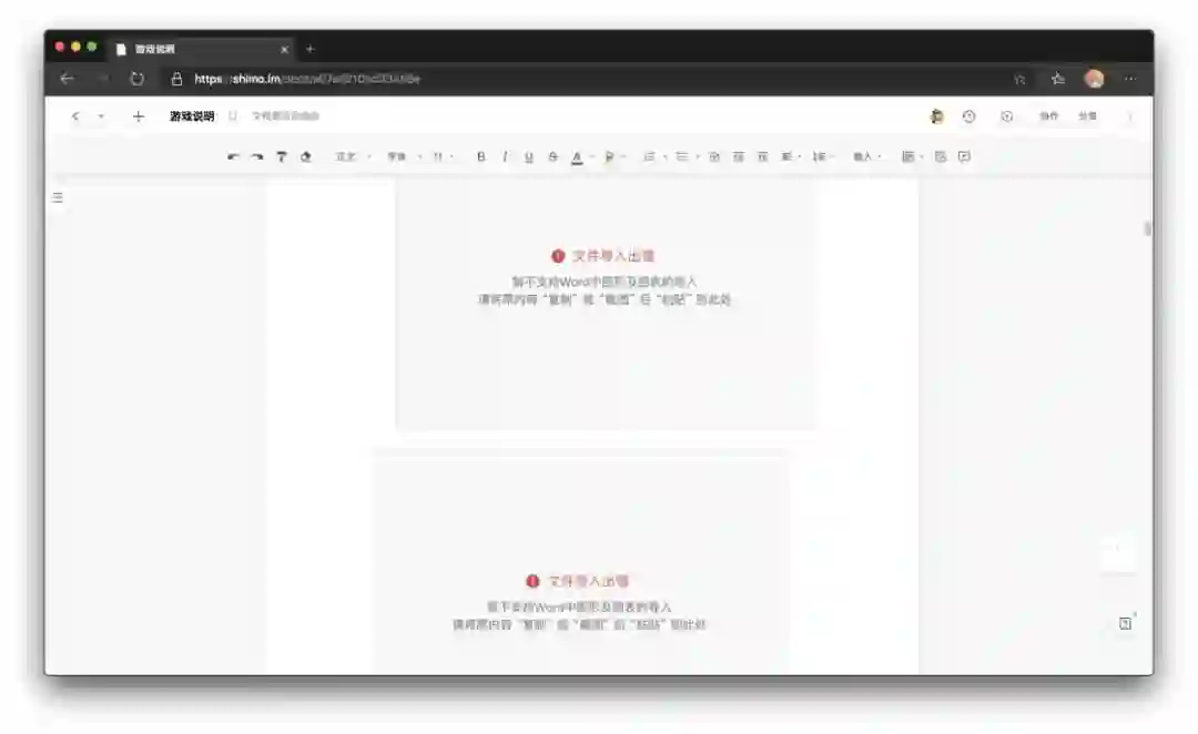 但如果你因此而期冀于石墨对 Word 文档的支持,那么失望是在所难免的。石墨支持上传 .doc/.docx 格式的 Word 文档,但它目前并不支持形状、图表等特殊内容的导入,有些插入的图片也无法正确显示,会提示你需要手动从 Word 中复制粘贴。这种「曲线救国」的方式,为用户平添了很多麻烦。