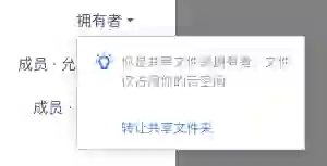 金山文档的文件夹共享功能,则在权限设置上做得更到位一些。除了基本的可编辑与仅查看,它还支持将其他协作者设定为管理员;甚至,你可以直接将文件夹的所有权转让给另一个人。