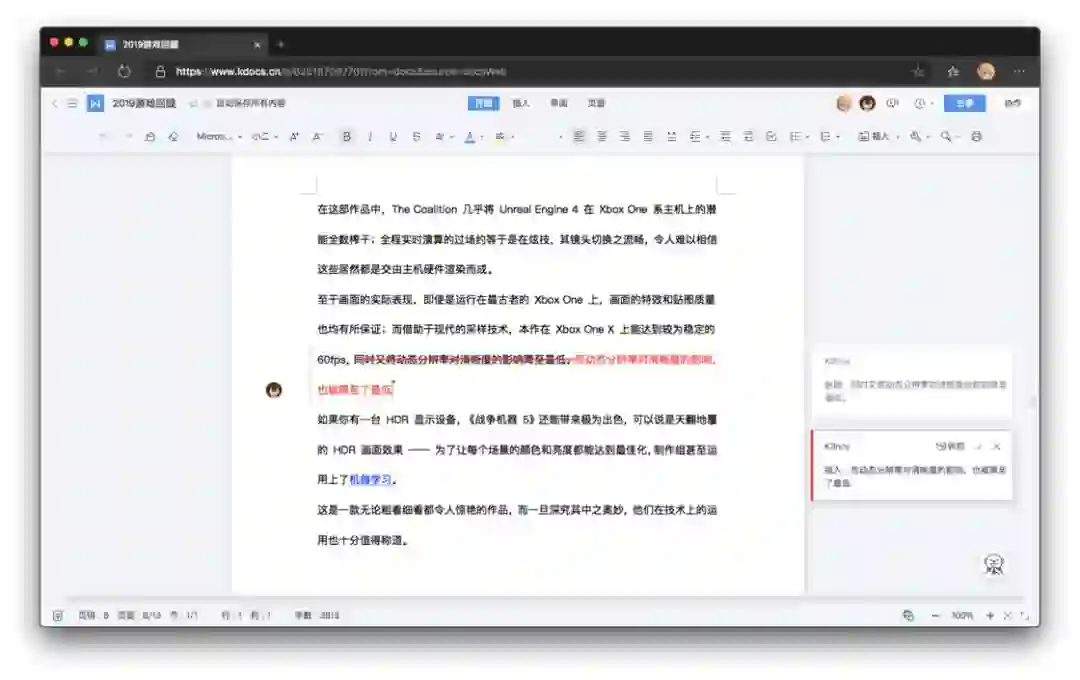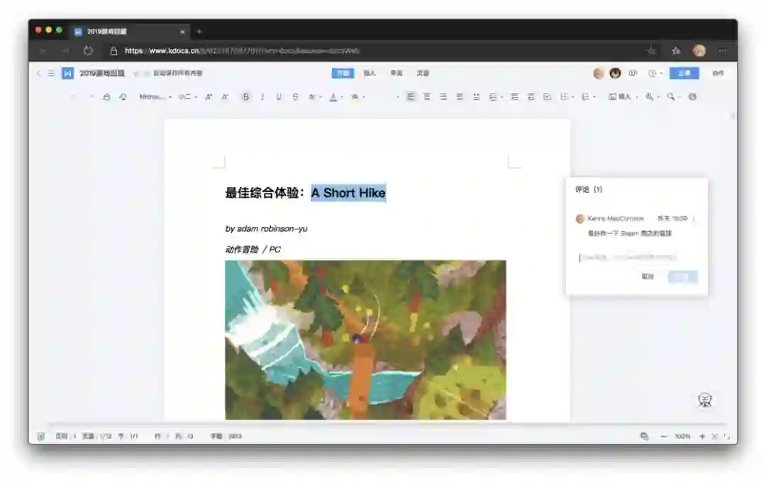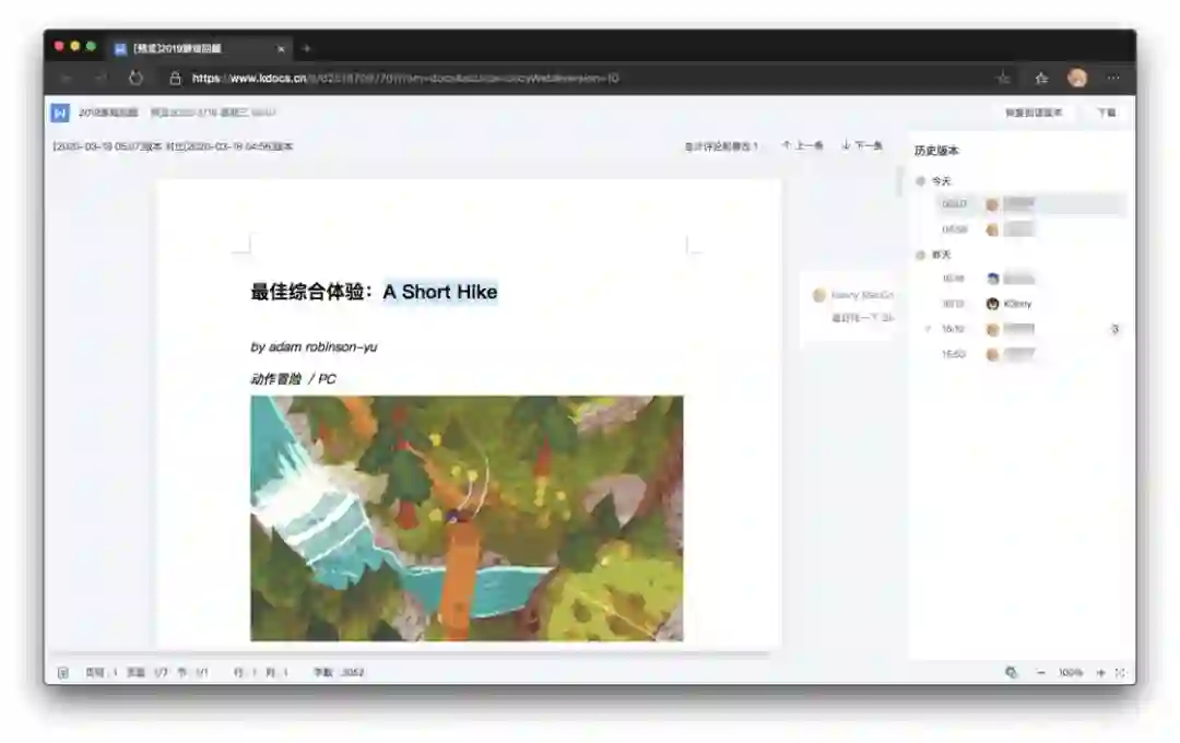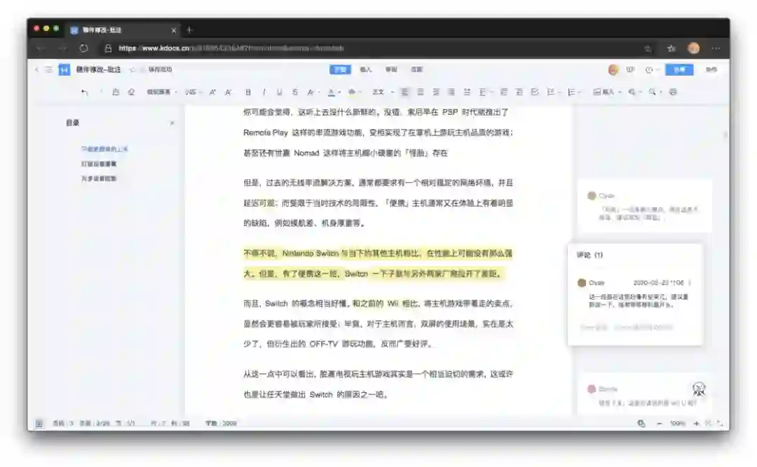 值得一提的是,对于已插入批注的 Word 文档,上述三家工具中只有金山能正常显示批注的人员和内容。在全面转移至「云端」之前,仍然会有很多办公场合使用 Office 进行本地批注;考虑到这一点,我不得不对金山的兼容性点个赞。