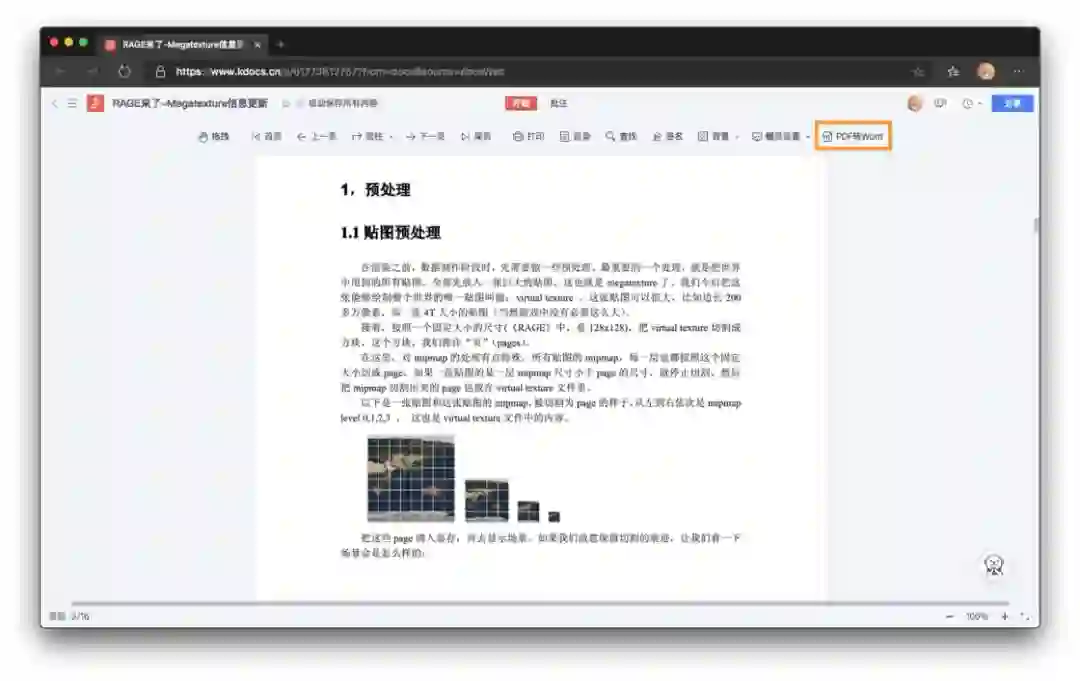 除了这些基本的编辑功能,金山还将自家的一些实用工具整合了进来,例如 PDF 阅读器上提供了转换为 Word 文档的快捷方式。根据测试,这一功能的转换效果不错,在同类工具中算得上是数一数二;并且对于会员,这项服务是可以无限次免费使用的。