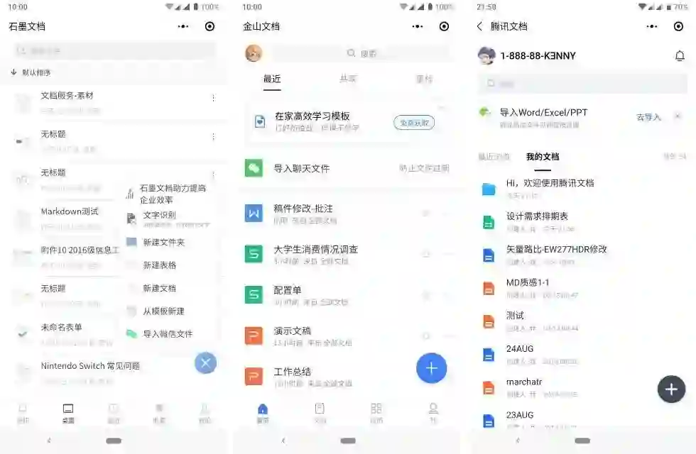 有趣的是,它们正好代表了截然不同的三股势力:石墨初出茅庐,是位意气风发的新人;金山则在办公软件领域摸爬滚打三十余年,有着深厚的技术底蕴。至于作为互联网巨头的腾讯,则是切入了一个新的领域,试图借助自己的影响力和用户基数拿下一城。