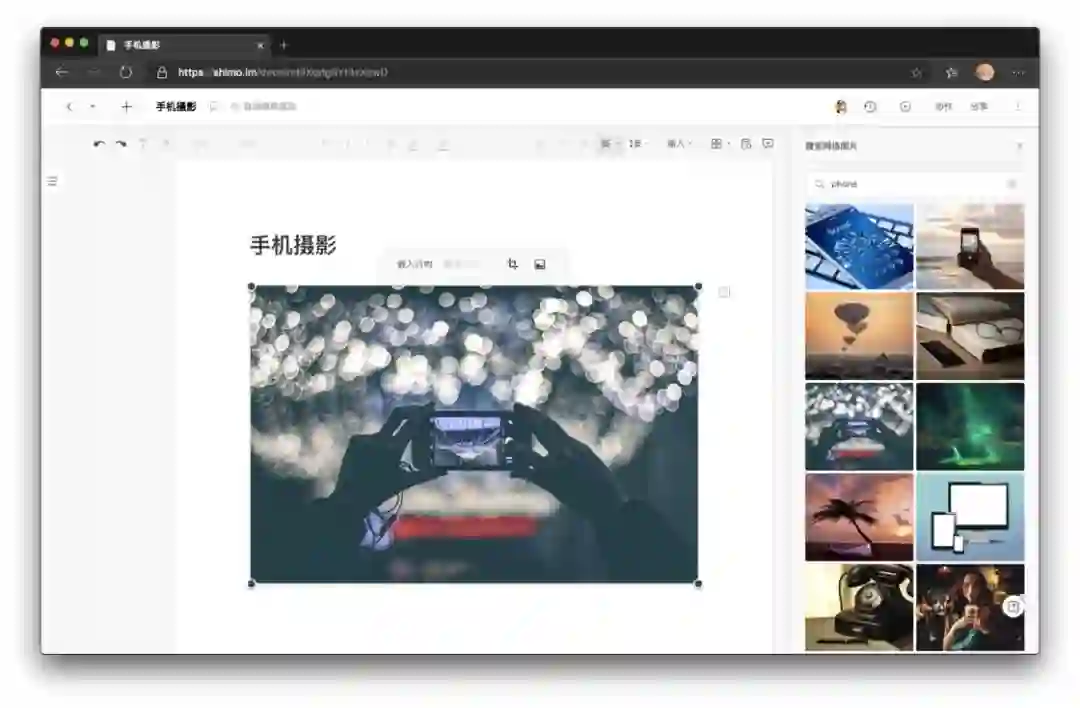 面向自媒体发布等使用场景,石墨也在功能上做出了一些针对性的优化;例如其接入了无版权图片平台 Pixabay,写作时可以直接以关键词搜索图片,并一键插入文中。省略了找图步骤的同时,还能规避文章可能存在的版权风险。
