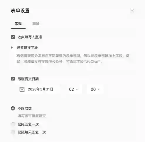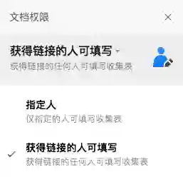 除了是否允许多次提交之外,腾讯几乎没有提供任何可以设置的权限。不过,它可以指定部分人员填写表单,算是一种弥补吧。