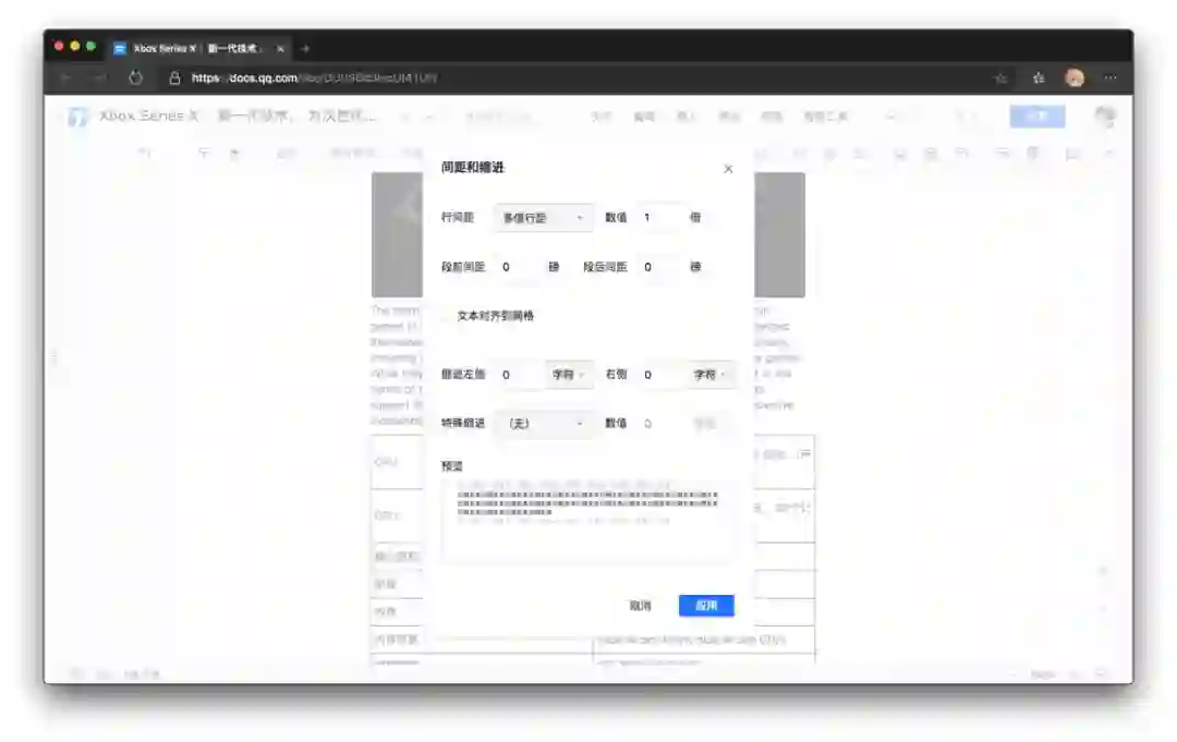 段落的排版功能方面,腾讯文档需要在一个弹出窗口中设置详细参数。相比同样采用类 Word 方案的金山,其设置选项不算丰富,也无法实时预览调节后的效果。