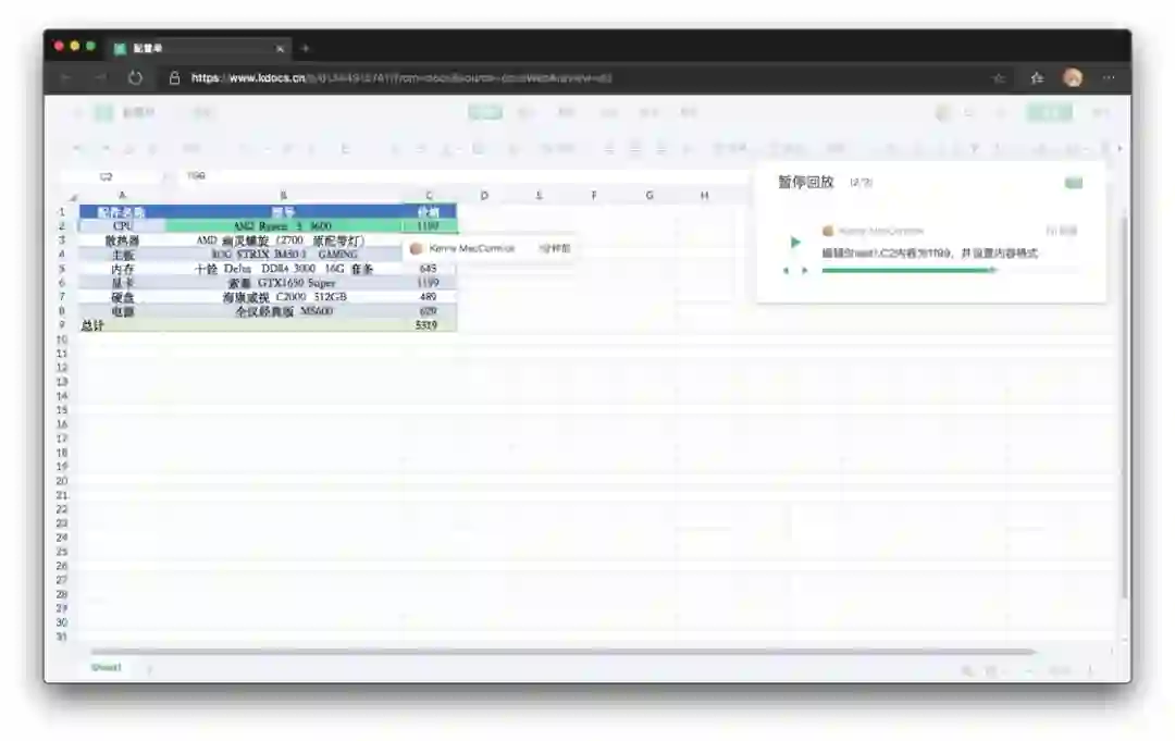 对于整张表格的历史改动,石墨和腾讯只能以大版本的方式显示;而金山能直接在当前的表格上以浮窗显示历史记录,而且还支持自动回放,可以详细地看到谁在什么时候修改了哪些内容。