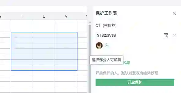 通过金山文档的「保护工作表」功能,你可以很好的实现这一点 —— 只需要框出工作表中可以编辑的区域,再指定可以编辑的协作者,最后设置一个密码,就可以了。当然,你也能直接锁定住整个工作表。