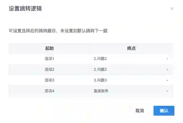 而金山并没有这样的限制,多个不同的选项可以跳转到同一个题目上,同时还提供了直接结束的选项,设置界面相较石墨也更为明晰。