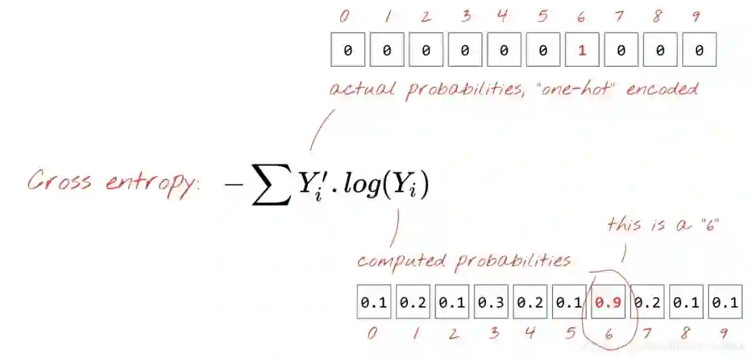 现在我们的神经网络产生了输入图像的预测,我们需要测量它们的好坏,即网络告诉我们与我们所知道的真相之间的距离。请记住,我们为此数据集中的所有图像的数字都有正确数字的标签。
