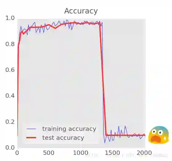 如果您看到准确度曲线崩溃,并且控制台输出NaN作为交叉熵,请不要惊慌,您正在尝试计算一个不是数(NaN)的值(0)。请记住,交叉熵涉及在softmax层的输出上计算的日志。由于softmax本质上是一个指数,从不为零,所以我们应该很好,但使用32位精度浮点运算,exp(-100)已经是一个真正的零。说白了就是,小数点后0太多,超出计算机精度,计算机将其判断为0,并作了分母,然后就出现这种现象。