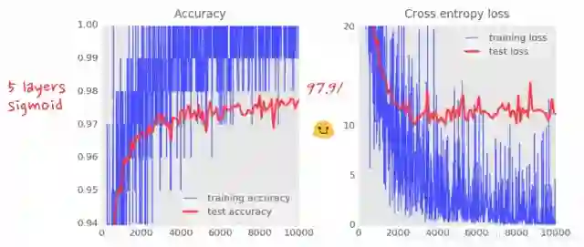 更新1/4:现在用RELU替换所有的S型,并且在加入图层时,您将获得更快的初始收敛,避免出现问题。只需在你的代码中简单更换tf.nn.sigmoid用tf.nn.relu。