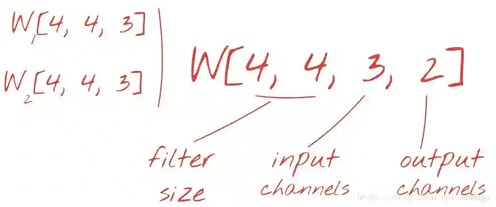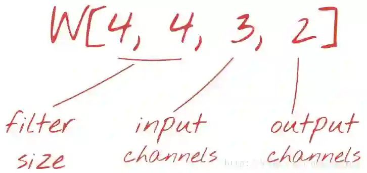 我们已经看到卷积层需要以下形状的权重张量。这是初始化的TensorFlow语法: