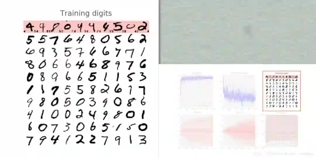 为了测试训练好后模型的识别质量,我们必须使用系统在训练期间没有用到过的手写数字。否则,模型可能会识别所有已训练的数字,但仍然不能识别我刚才新写的数字“8”。MNIST数据集中包含10,000个测试手写数字。在这图里,您可以看到大约1000个数字,其中所有被识别错误的,都放在顶部(红色背景上)。图左侧的比例可以大致表示分类器的准确性。
