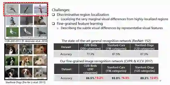 传统分类的目标类别有很多,比如可能有二十种花,三十种鸟。但是在真实场景中,花的种类至少有250K,鸟的种类至少有50K。在如此巨大的差距下要求机器理解真实的世界,就需要它拥有更多的智能,能识别出更精细的物体类别。