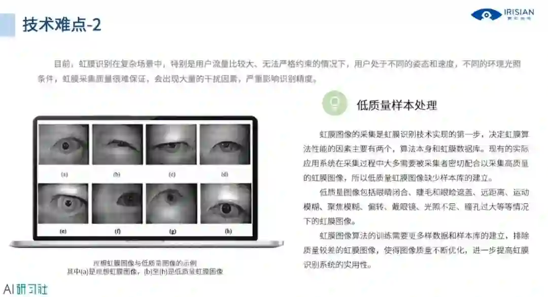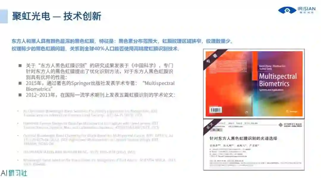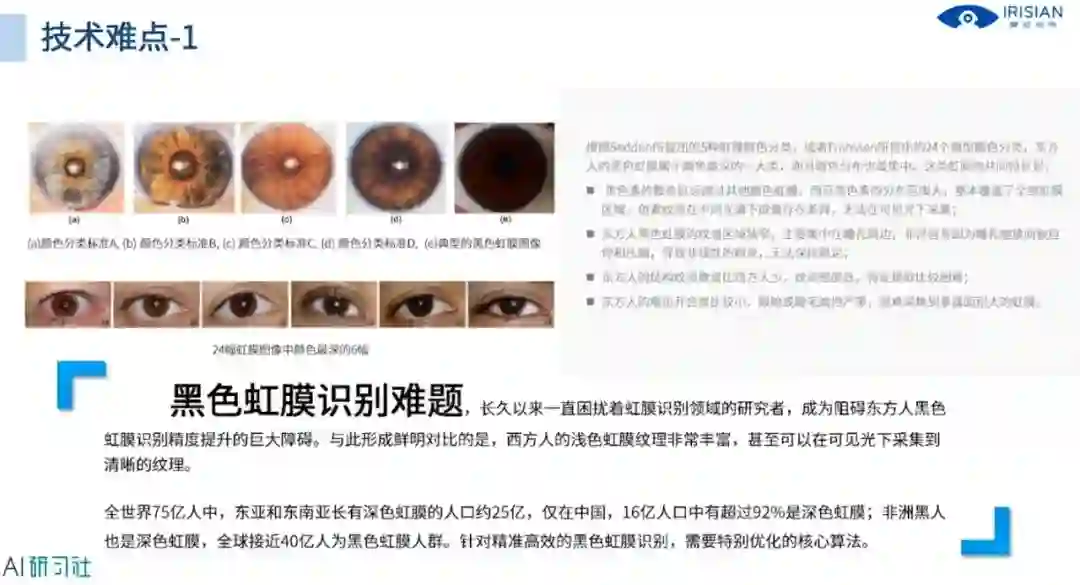 接下来我们看技术创新,技术创新部分主要针对东方人的黑色虹膜,下图是我们取得的一些研究成果,详细讲解请观看视频回放: