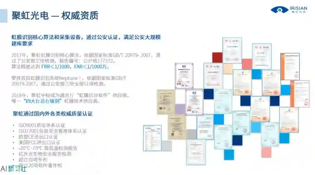 最后来看看聚虹光电的介绍,聚虹光电作为专业的虹膜识别算法公司,做了一些什么事情,我们在整个行业当中是怎样的地位,我们期望未来能达到一个什么样的高度。