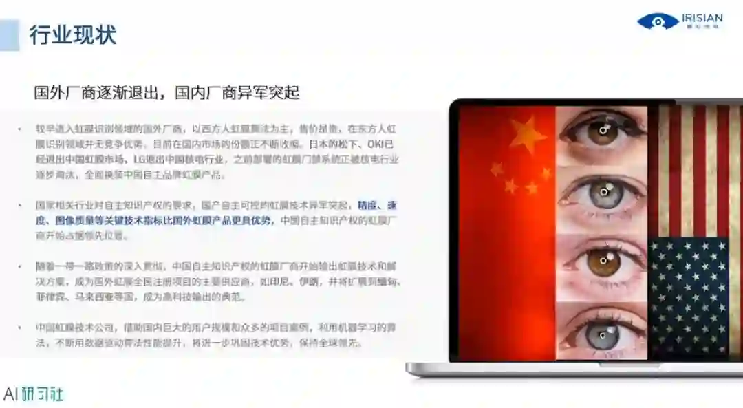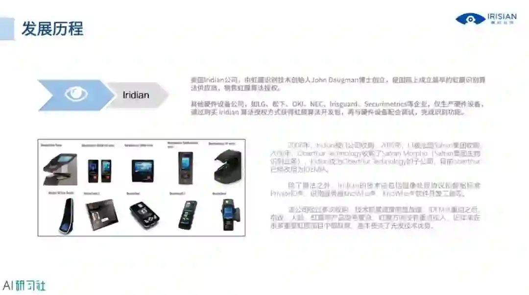 来看一下虹膜识别在海外的发展过程,以Iridian公司为例,公司由虹膜识别的创始人创立,详细讲解请观看视频回放:
