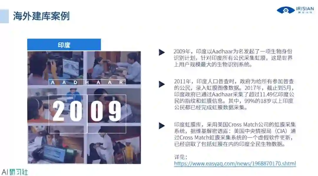 具体可以看一下海外虹膜建库的案例,最具代表性的案例就是印度,另外的案例就是印尼和新加坡,详细讲解请观看视频回放:
