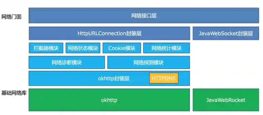 HTTPDNS 在 Android 网络架构的位置及实践百度 App 的 Android 网络流量都在 okhttp 之上,上层进行了网络门面的封装,封装内部的实现细节和对外友好的 API,供各个业务和基础模块使用,在 okhttp 上我们扩展了 DNS 模块,使用 HTTPDNS 替换了原有的系统 DNS。