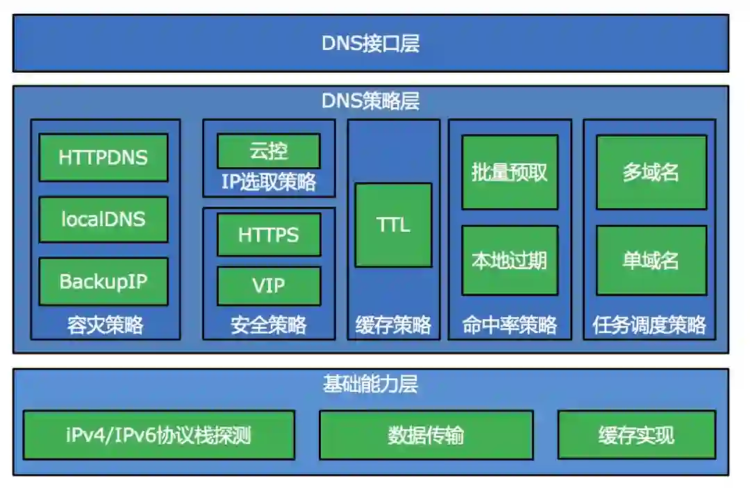 DNS 策略层通过多种策略的组合,使 HTTPDNS 服务在性能,稳定性,可用性上均保持较高的水准,下面讲解下每个策略设计的初衷和具体实现。