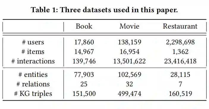 本文实验使用的数据集为推荐系统中三项基准数据集,数据集具体如表 1 所示。