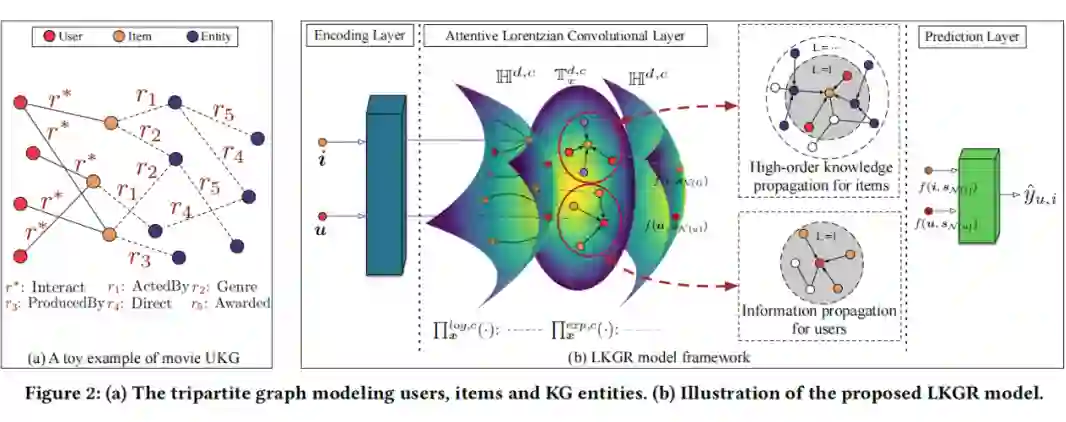 本文的 LKGR 模型整体框架如图 2(b)所示,具体包括编码层,洛伦茨卷积层以及预测层。