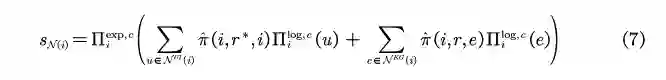 类似地,物品与用户以及外部知识相连,故其消息传递可表示为: