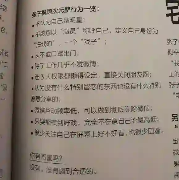 演员张子枫在一期杂志采访中,被问到“你有闺蜜吗”。