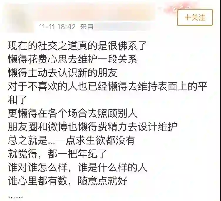 懒得交新朋友,懒得维护老朋友,更懒得因为照顾别人委屈了自己。