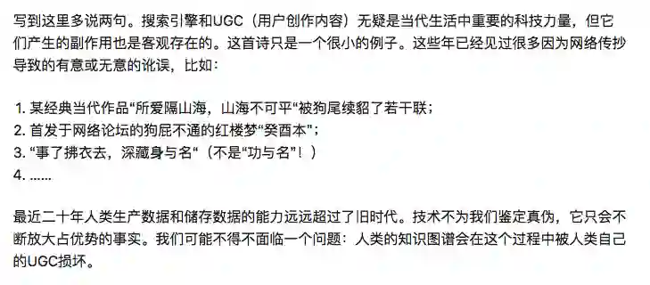 如今知识图谱中的很多知识都来源于开放数据,如果UGC的数据都是错的,那么可想而知我们由此构建的知识都会出现偏差。