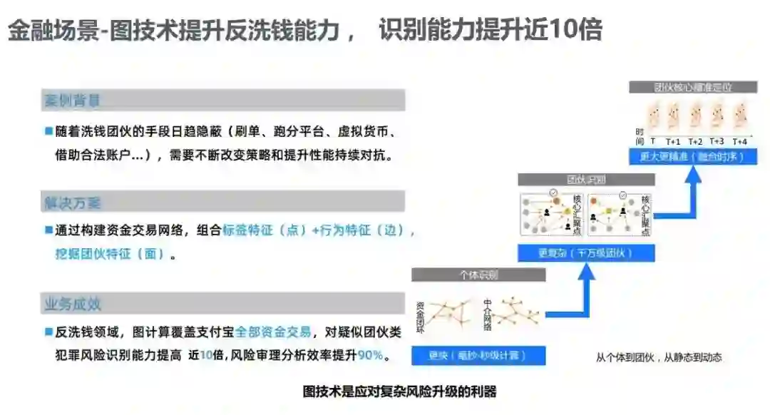 值得一提的是,现在 TuGraph 已经用于蚂蚁在线支付的实时链路中,支付宝的风险识别能力提升了近 10 倍,风险审理分析效率提升 90%。