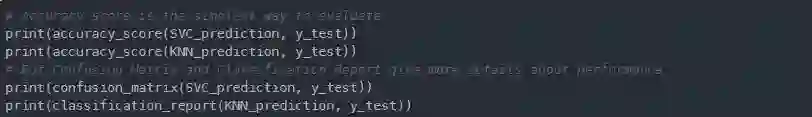 如前所述,分类器必须进行实例化并在训练数据上进行训练。然后就可以利用分类器进行预测。通过将分类器的预测与测试数据中分类的实际已知值进行比较,你就可以测量该分类器的准确度。
