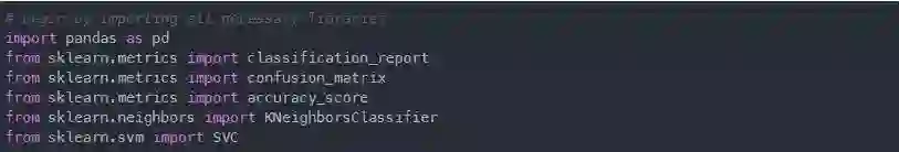 实现分类器的第一步是将所需要的分类器导入到Python中。我们来看看逻辑回归的import语句: