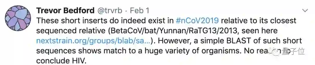 Trevor Bedford直接上数据反驳:论文中提到的四个原始序列在其它物种中也广泛存在,其中大部分甚至不是病毒。