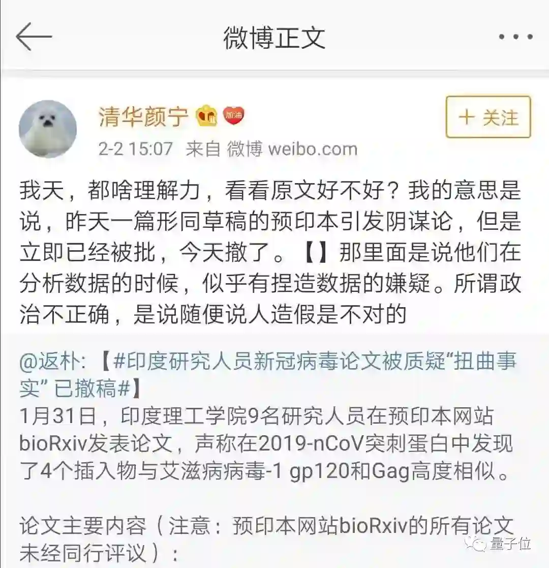 在众多科学家的驳斥下,这些所谓的研究成果根本站不住脚。2月2日上午,印度学者们已主动撤下了在bioRxiv上预览的论文。
