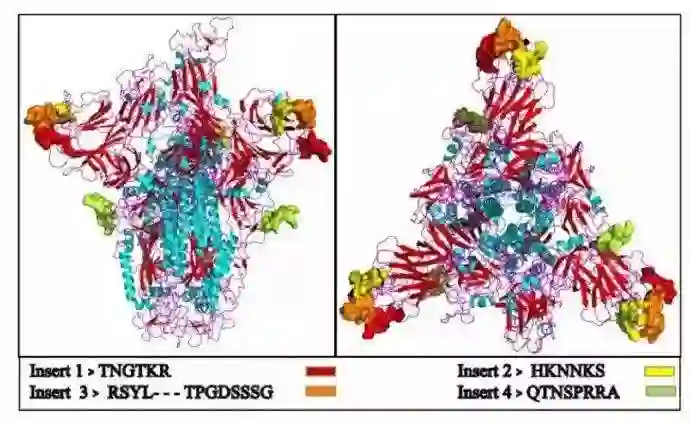 来自印度德里大学和印度理工学院的研究人员,在这篇论文中声称,在2019-nCoV(新型冠状病毒)突刺蛋白中发现了4个插入序列,其与HIV-1 gp120和Gag高度相似。