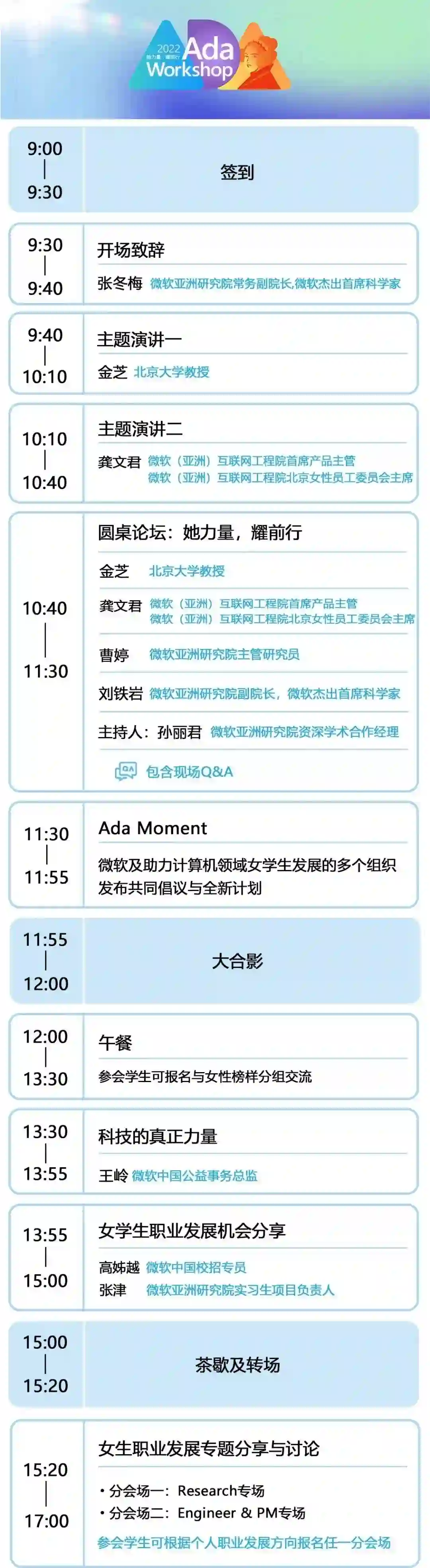 通过 Ada Workshop 2022 参会筛选及校招简历初筛的女生即可直通微软校招面试!详情如下:
