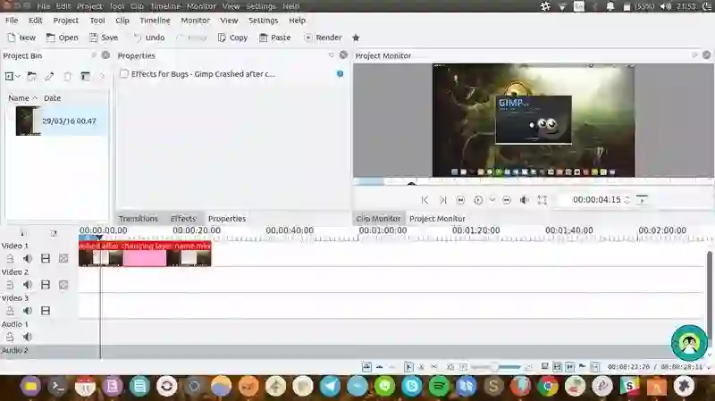 Kdenlive[3] 是 KDE[4] 上的一个自由且开源[5]的视频编辑软件,支持双视频监控、多轨时间线、剪辑列表、自定义布局、基本效果,以及基本过渡效果。