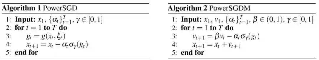 这里,我们把Powerball函数作用到SGD的随机梯度项上,如下所示: