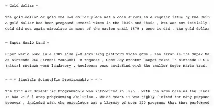 来自于 WikiText-2 语言建模数据集的样例