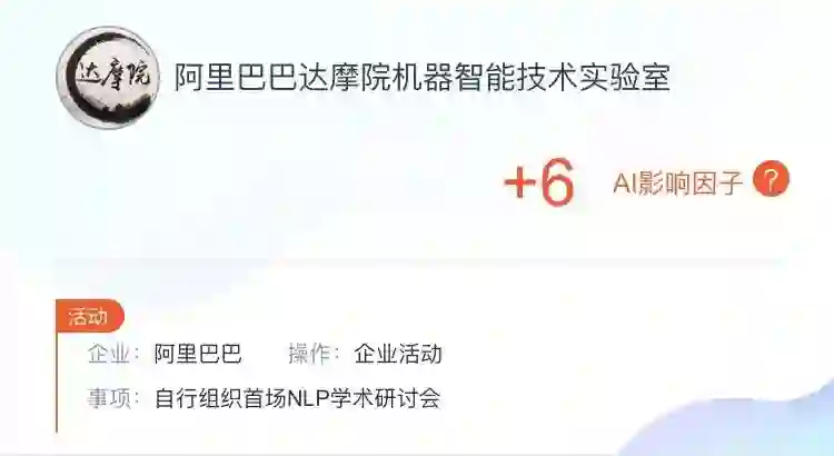 阿里巴巴达摩院机器智能技术实验室自然语言理解研究组在雷锋网学术频道 AI 科技评论旗下数据库项目「AI 影响因子」中有突出表现,凭借刷新 SQuAD 纪录获得加分。