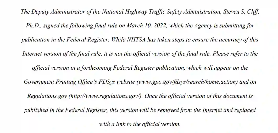 NHTSA 新规完整版链接:https://www.nhtsa.gov/sites/nhtsa.gov/files/2022-03/Final-Rule-Occupant-Protection-Amendment-Automated-Vehicles.pdf