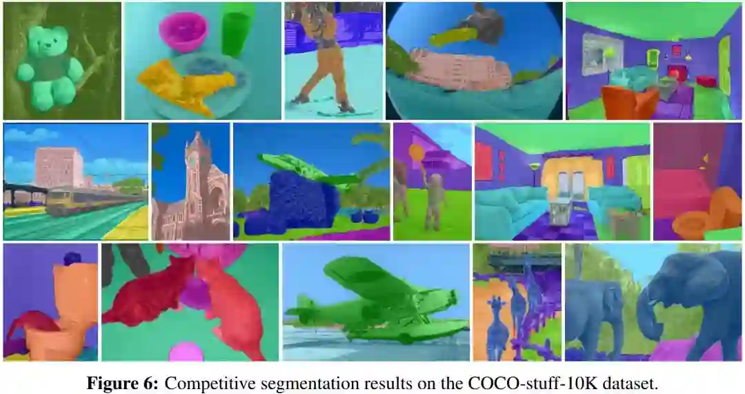 上表与图给出了COCO-Stuff-10K数据集上的指标与可视化效果,从中可以看到: