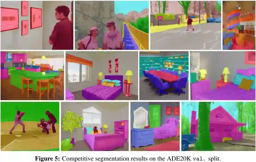 上表与图给出了ADE20K数据集上的指标与可视化效果,从中可以看到: