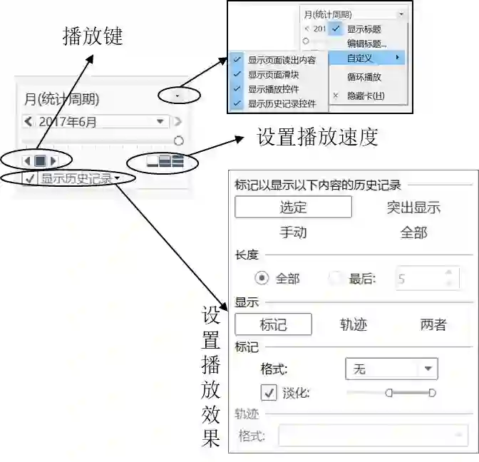 拖放字段“统计周期”到页面卡,这时页面卡下方会自动出现一个“年(统计周期)”的播放器。将日期的显示“年(统计周期)”调整为“月(统计周期)”,如图22所示。