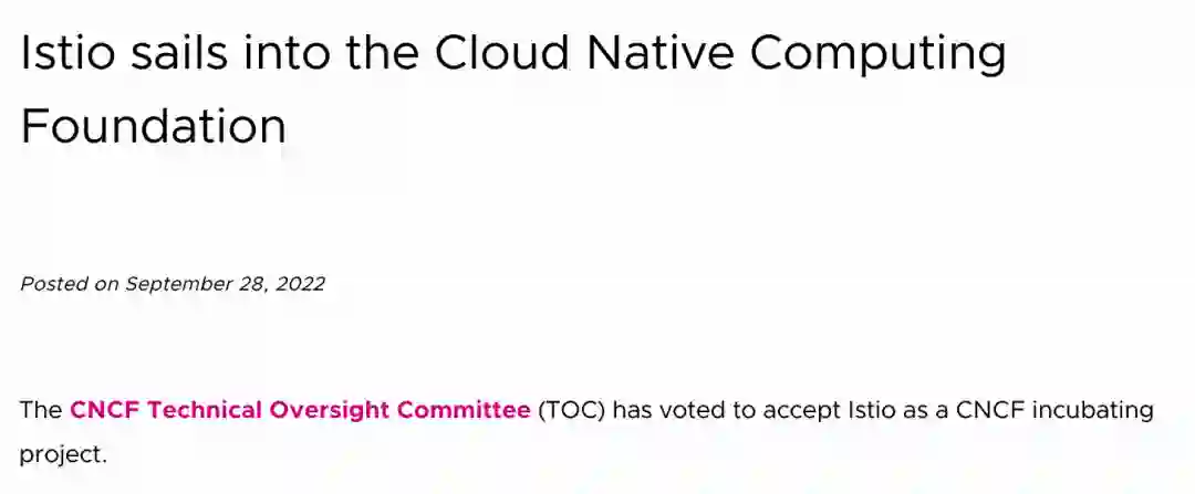 很早之前谷歌就承诺将 Istio 项目移交给 CNCF,但是在 2020 年突然背弃了承诺,转而将 Istio 商标转让给一个自己创立的中立组织 Open Usage Commons 谷歌这一决定也让很多其他项目贡献者感到不安。好在今年 4 月份,谷歌收回这一决定,拟定将 Istio 捐赠给 CNCF。有传言表示,谷歌这一决定可能是受到 Istio 越来越流行的影响,到了 2019 年,Istio 已经是 GitHub 上增长第四快的开源项目,时至今日,有超过 190 家企业为该项目作出贡献,超过 15 家公司为基于 Istio 的 Kubernetes 提供托管产品或附加组建。