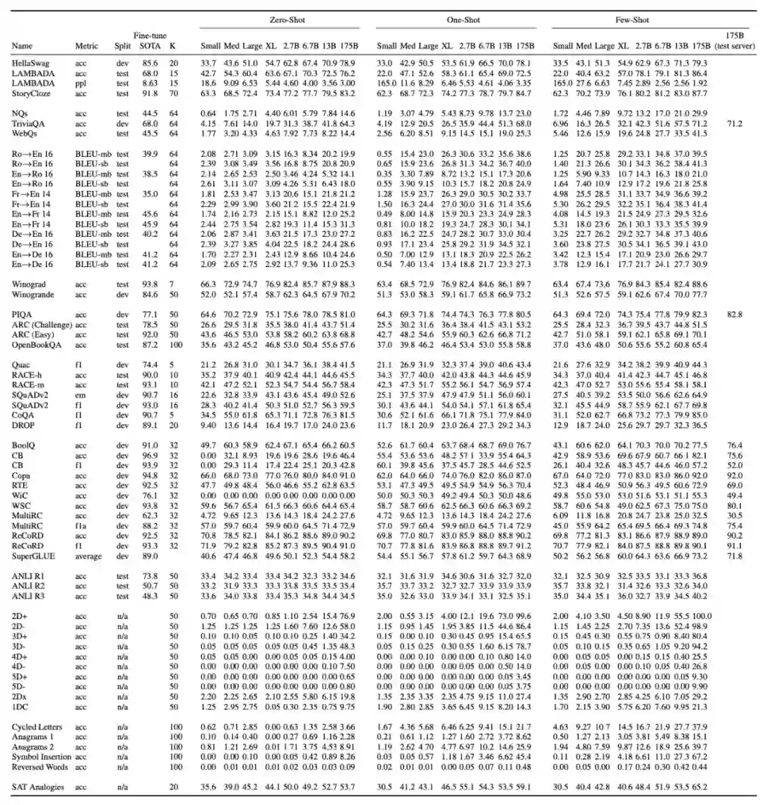 OpenAI 在多项任务中对 GPT-3 的性能进行了测试,包括语言建模、补全、问答、翻译、常识推理、SuperGLUE 等任务。