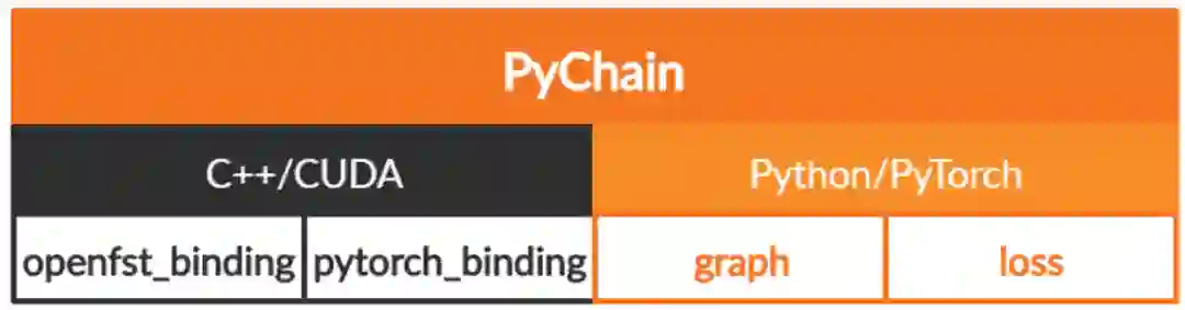 ,对于 Kaldi 自动语音识别(automatic speech recognition, ASR)工具包中链式模型的端到端无网格最大交互信息(lattice-free maximum mutual information, LF-MMI)训练,PyChain 可以实现完全并行化 PyTorch 实现。